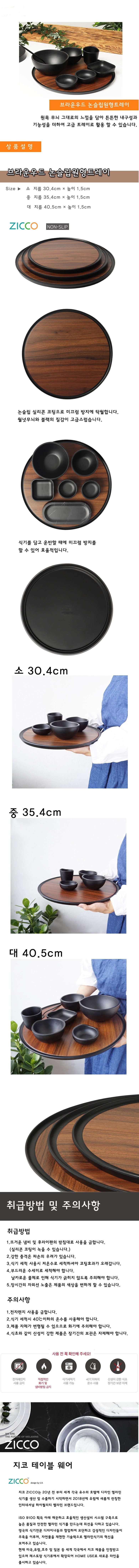 지코멜라민 브라운우드 논슬립원형쟁반 소 논슬립 이미지/