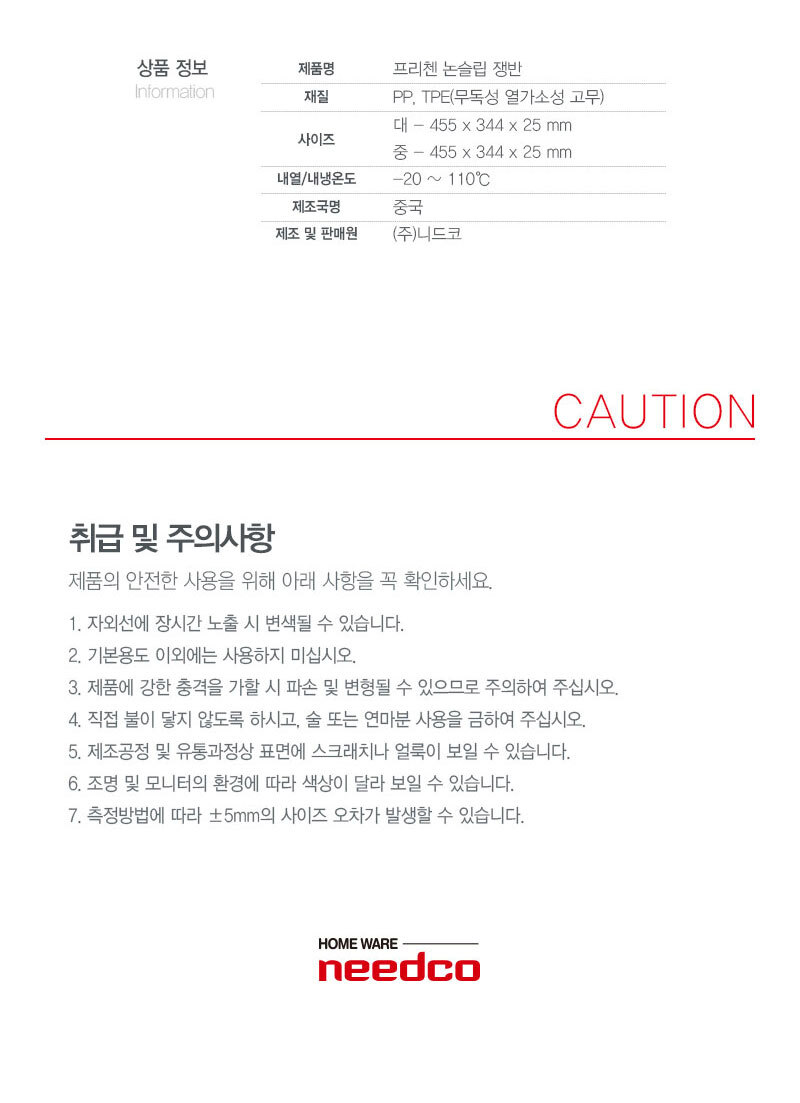 1. 품명 및 모델명 : 프리첸 논슬립쟁반