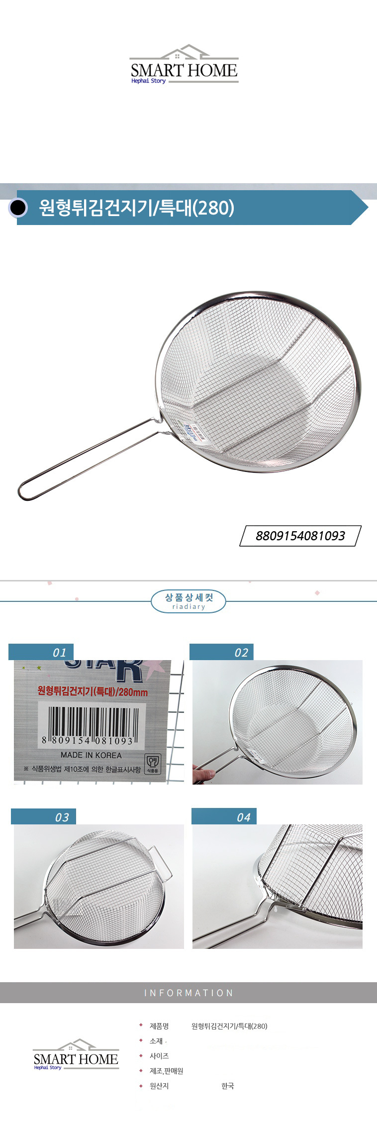 주방용 스텐레스건지기 원형 튀김 건지기 특대(280) 이미지/