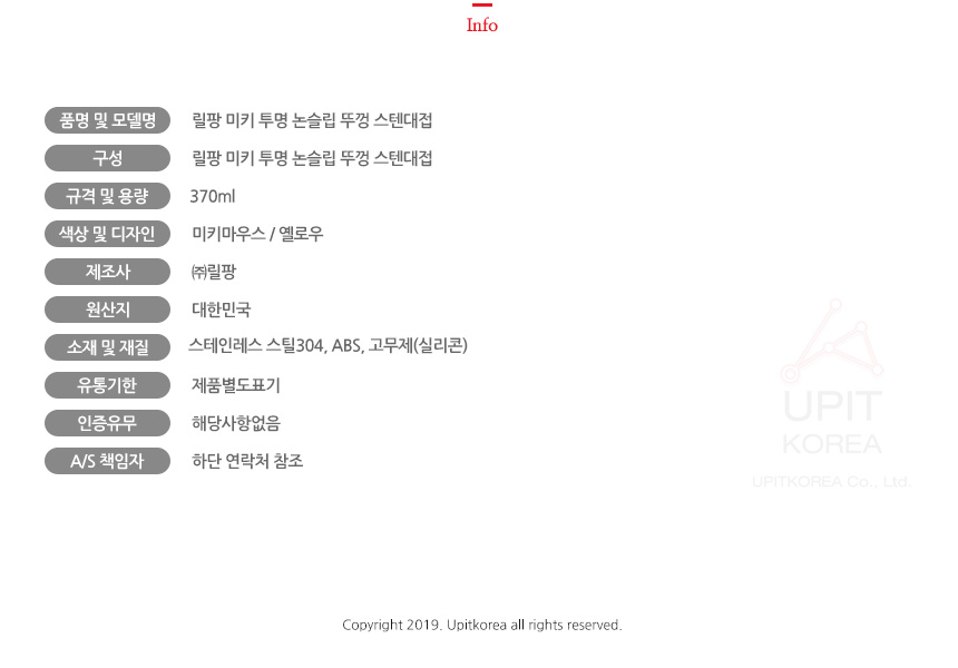 릴팡 미키 투명 논슬립 뚜껑 스텐대접 2881 이미지/
