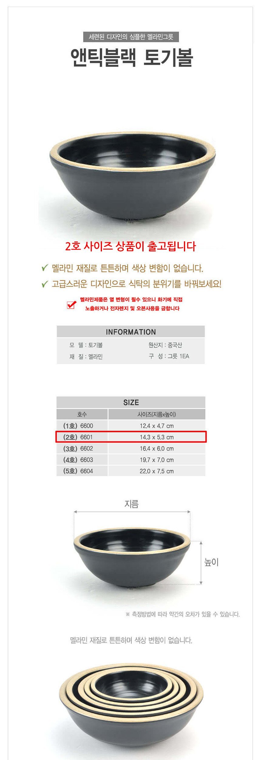 업소용 멜라민 토기볼 비빔그릇 대접 앤틱블랙 2호 이미지/