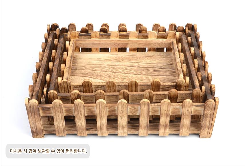 3P 원목 다용도 트레이 세트 울타리형x2개 나무트레이 이미지/
