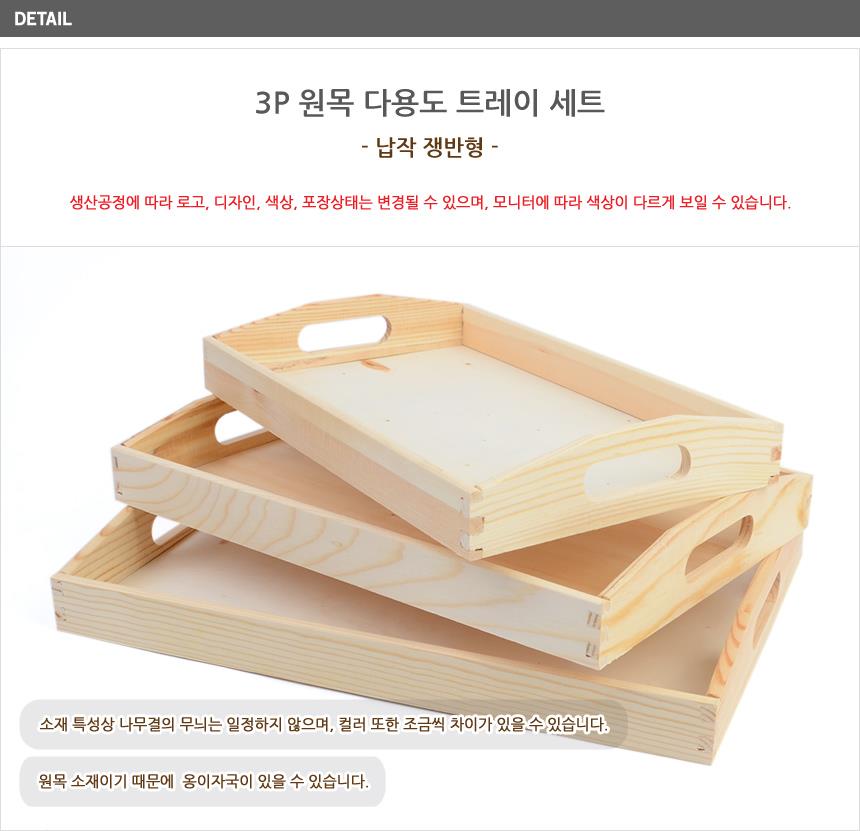 3P 원목 다용도 트레이 세트 납작쟁반형 나무트레이 이미지/