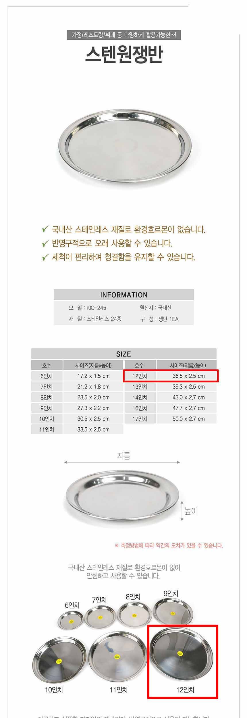 스테인레스 원형쟁반 37cm 이미지/