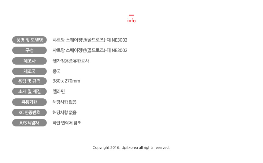 샤르망 스퀘어쟁반(골드로즈)-대 NE3002 이미지/