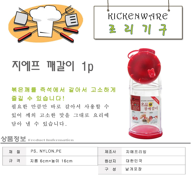 지에프 깨갈이 1p 깨절구 후추갈이 수동깨갈이 미니절