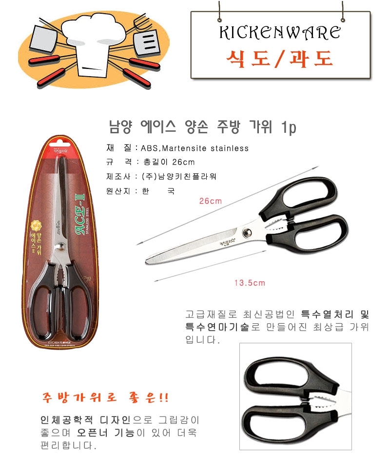 남양 에이스 양손 주방 가위 1p 고급주방가위 이쁜주