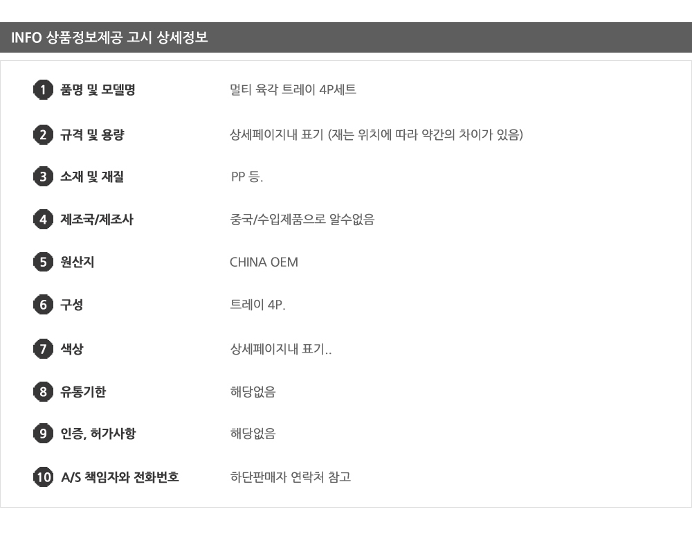 멀티 육각 트레이 4P 세트 이미지/