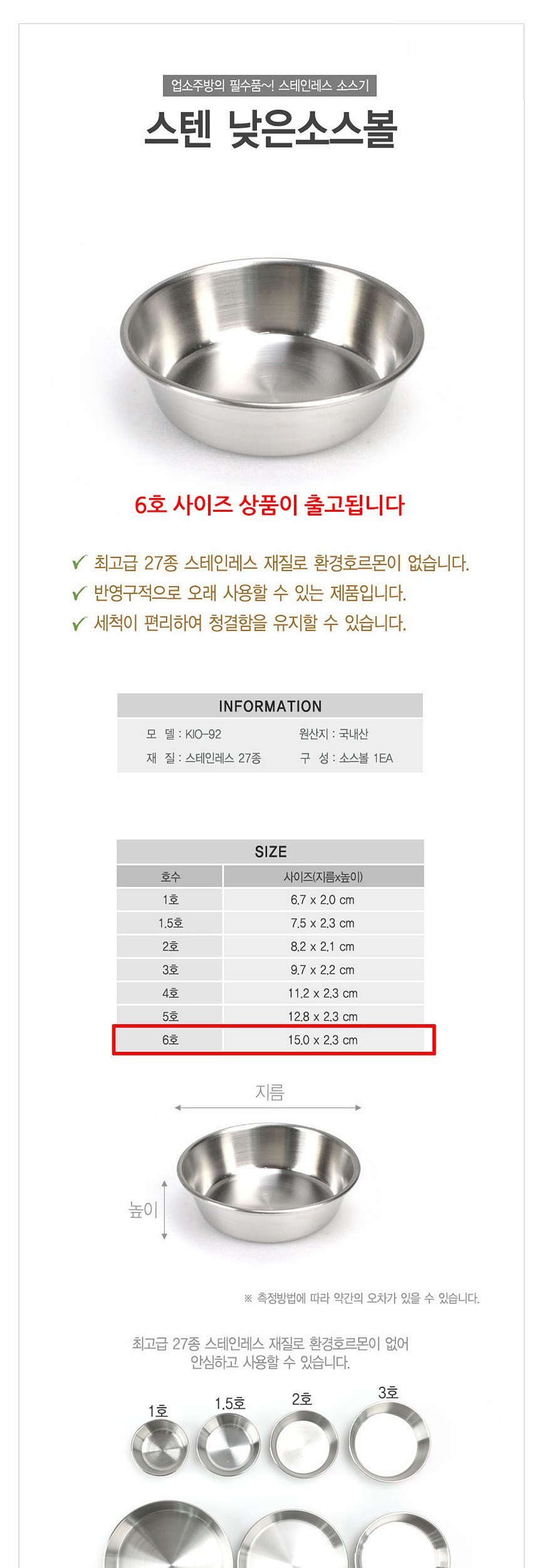 스테인레스 낮은 소스볼 종지그릇 6호 15cm