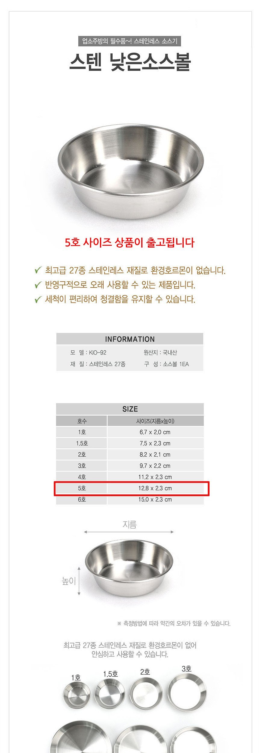 스테인레스 낮은 소스볼 종지그릇 5호 13cm