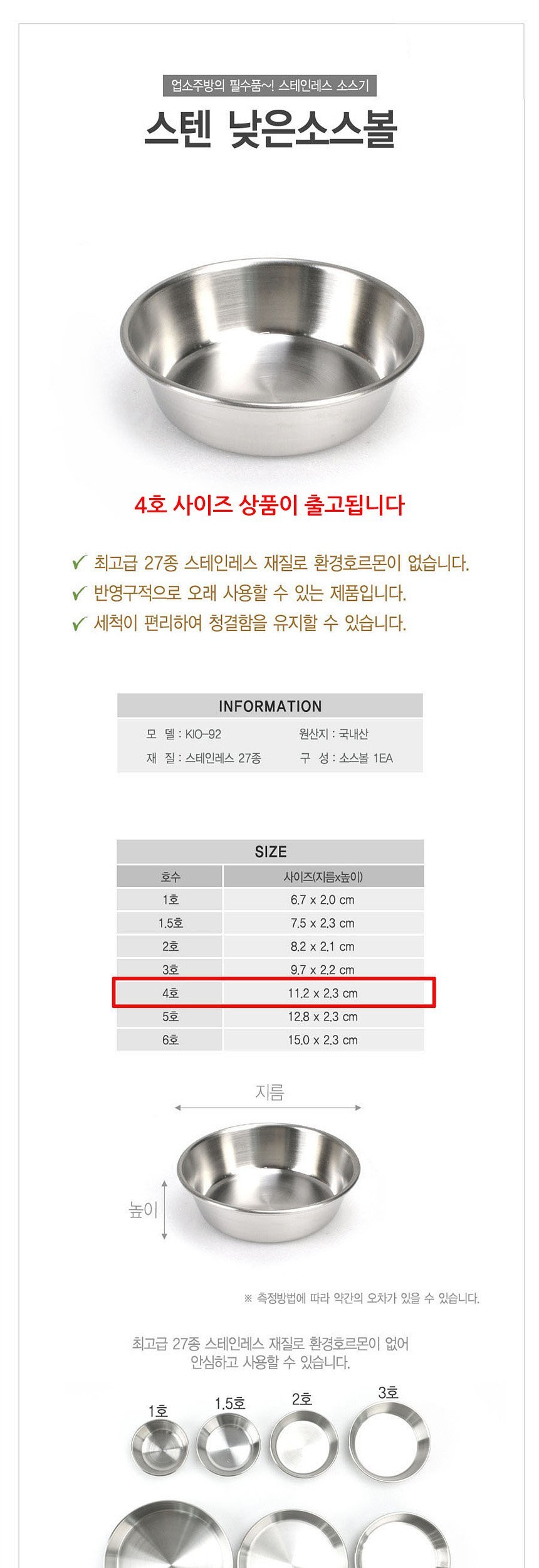 스테인레스 낮은 소스볼 종지그릇 4호 11cm