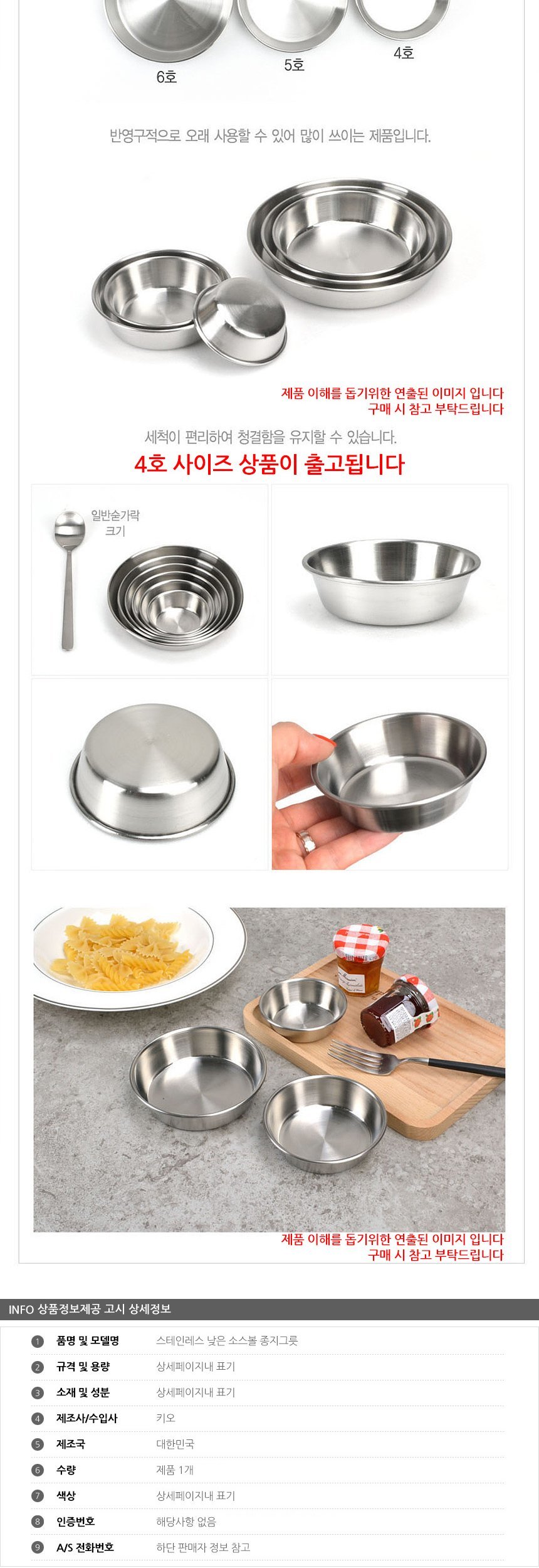 스테인레스 낮은 소스볼 종지그릇 4호 11cm 이미지/
