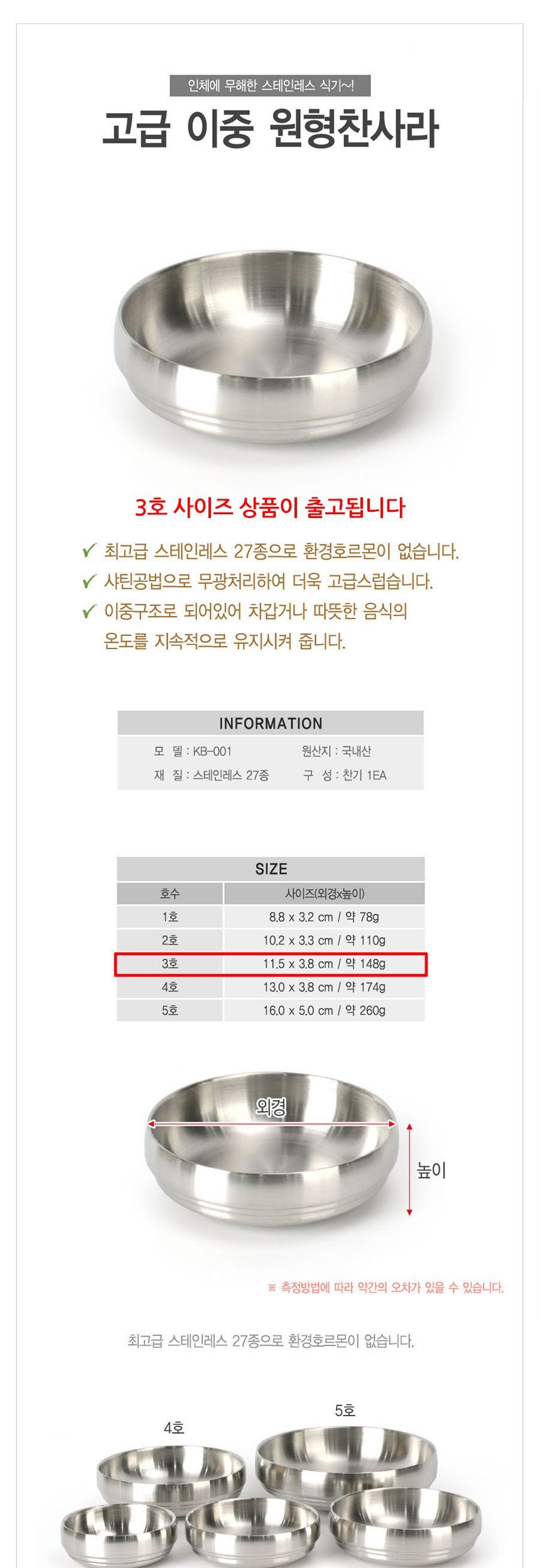 이중 스테인레스 고급 원형찬기 3호 11cm