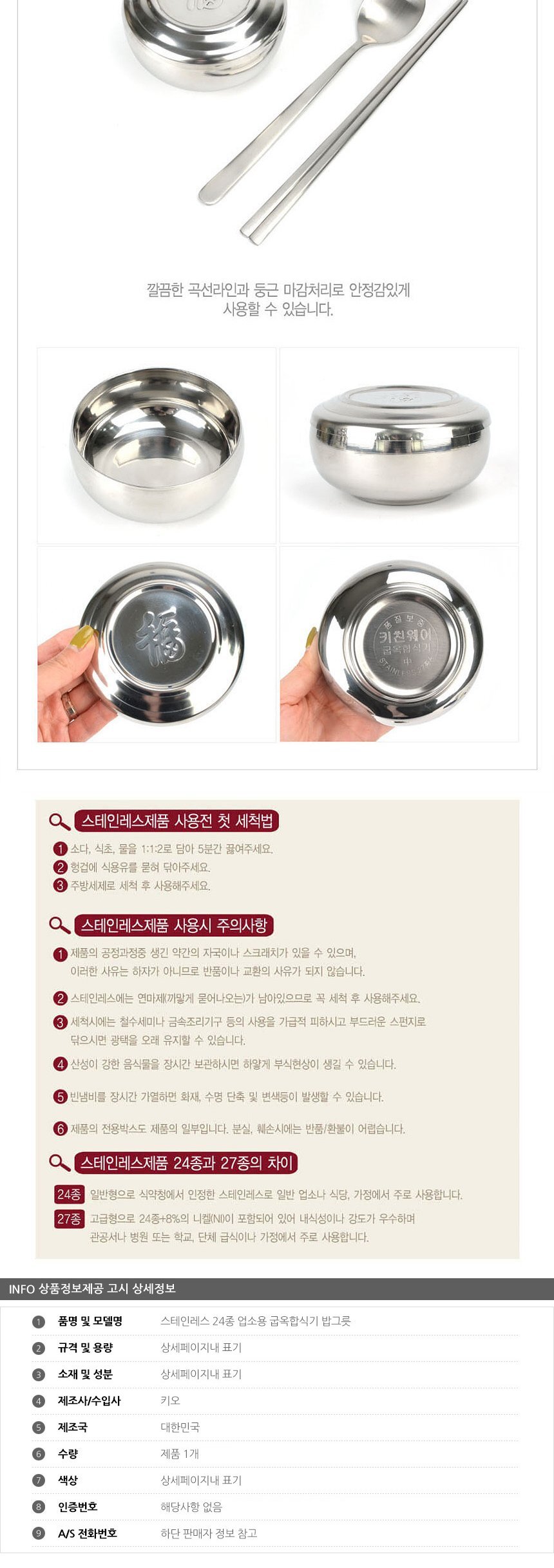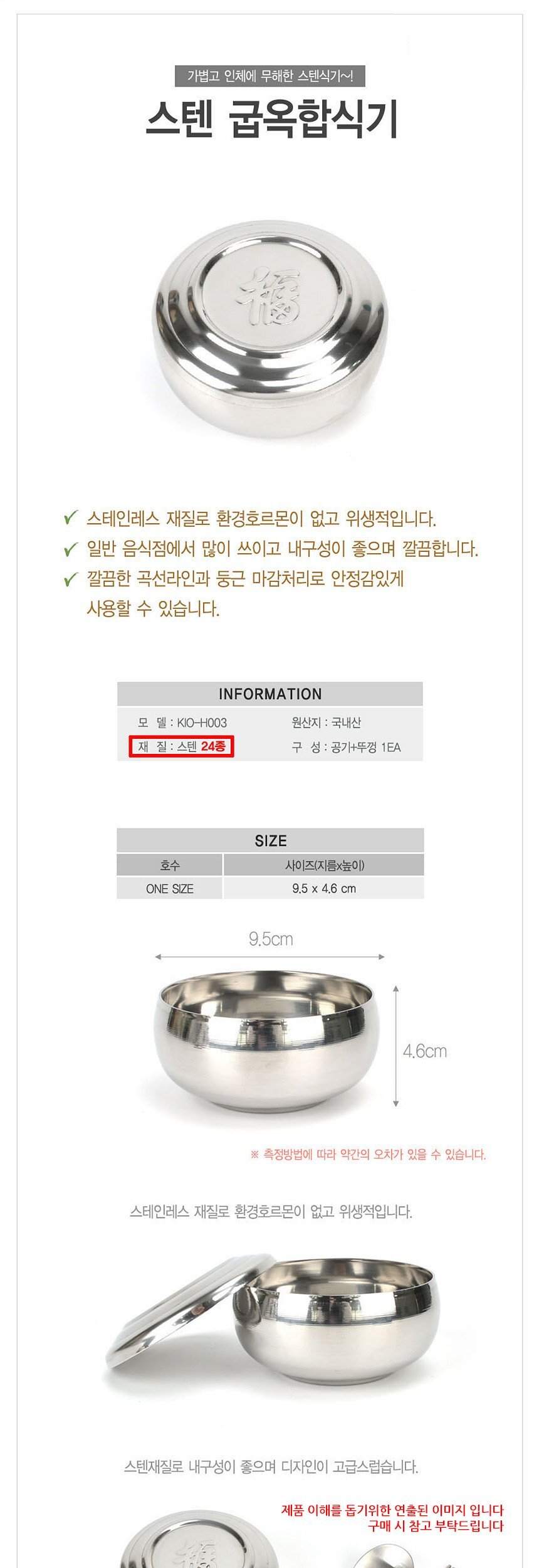 스테인레스 24종 업소용 굽옥합식기 밥그릇 9.5cm