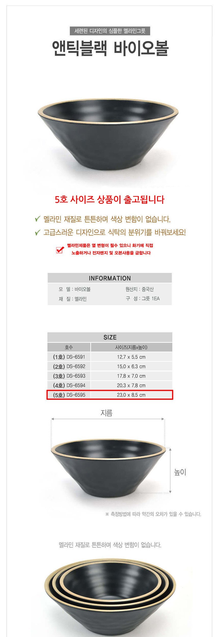 업소용 멜라민 바이오볼 대접 앤틱블랙 5호 23cm 이미지/