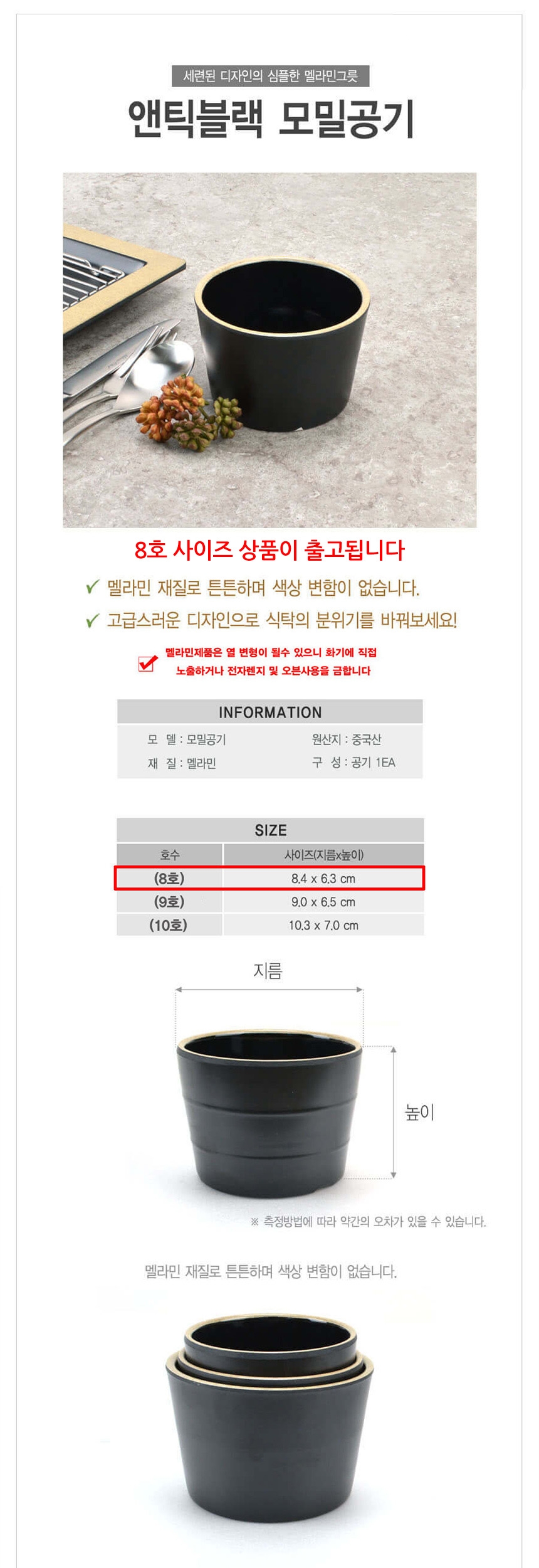 업소용 멜라민 모밀공기 앤틱블랙 8호 8cm 이미지/