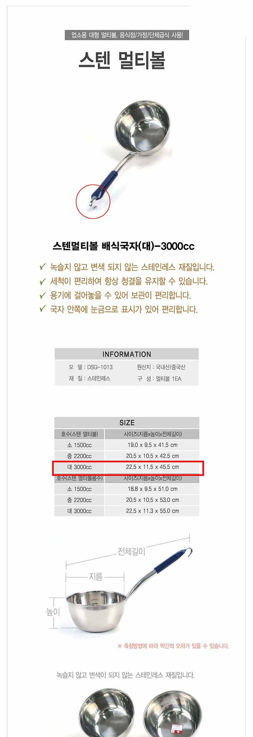 스텐 멀티볼 대형국자 대형 P핸들 3000cc 이미지/