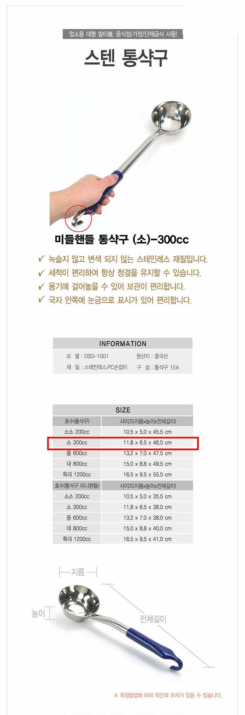 스텐 통샥구 국자 소형 P핸들 300cc 이미지/
