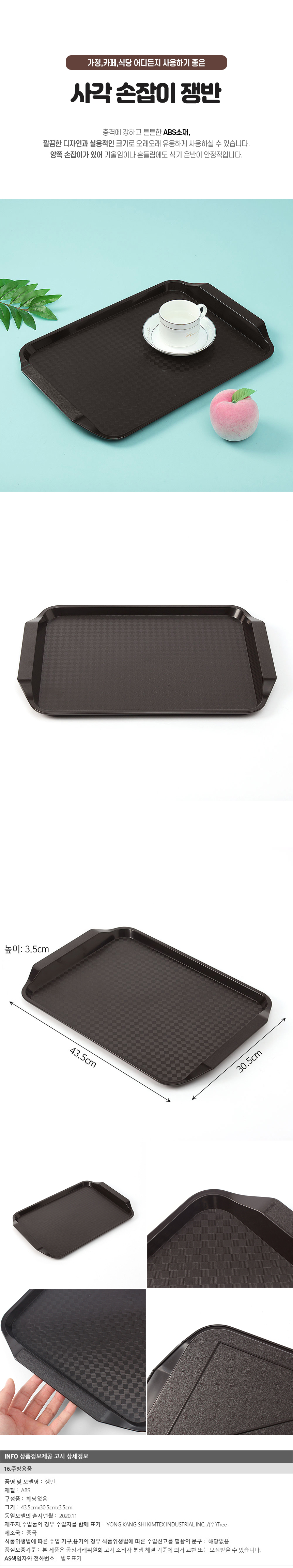 손잡이 사각 쟁반 (브라운) 이미지/
