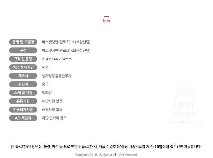 • 반품/환불조건: 도착후 1주일 이내 사용하지 않은 상태에서 가능합니다,초기제품 이상의 경우 동일한 제품으로 1:1 교환원칙, 사용후 제품이상은 A/S를 원칙으로 합니다,