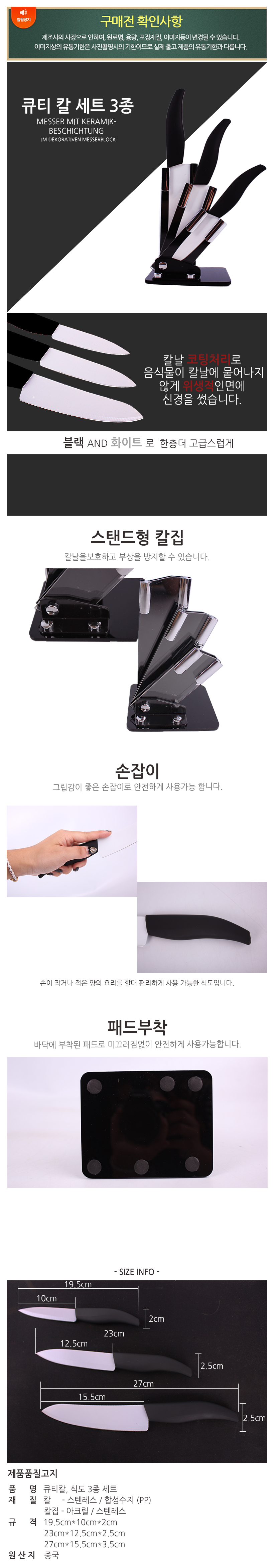큐티칼세트 3종 과도 식도 주방칼 이미지/