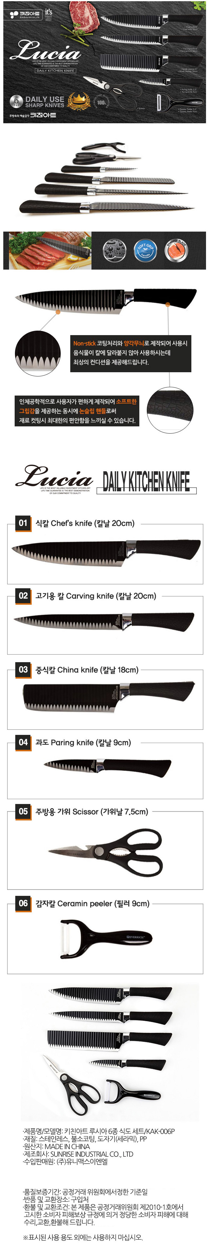 • 품명 및 모델명키친아트 안붙는 물결무늬 주방칼 6종세트 006P