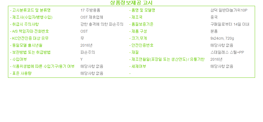 삼덕 일반 마늘가위 10P 주방가위 위생가위