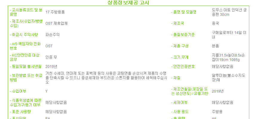 제조자 상품상세설명에 표기