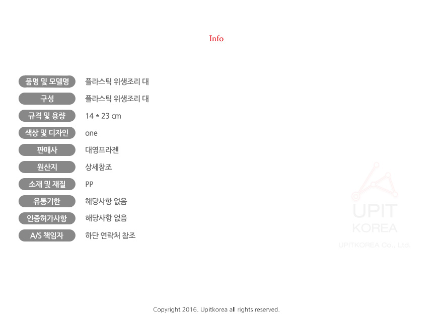 1. 품명 및 모델명 : 상세정보별도표시