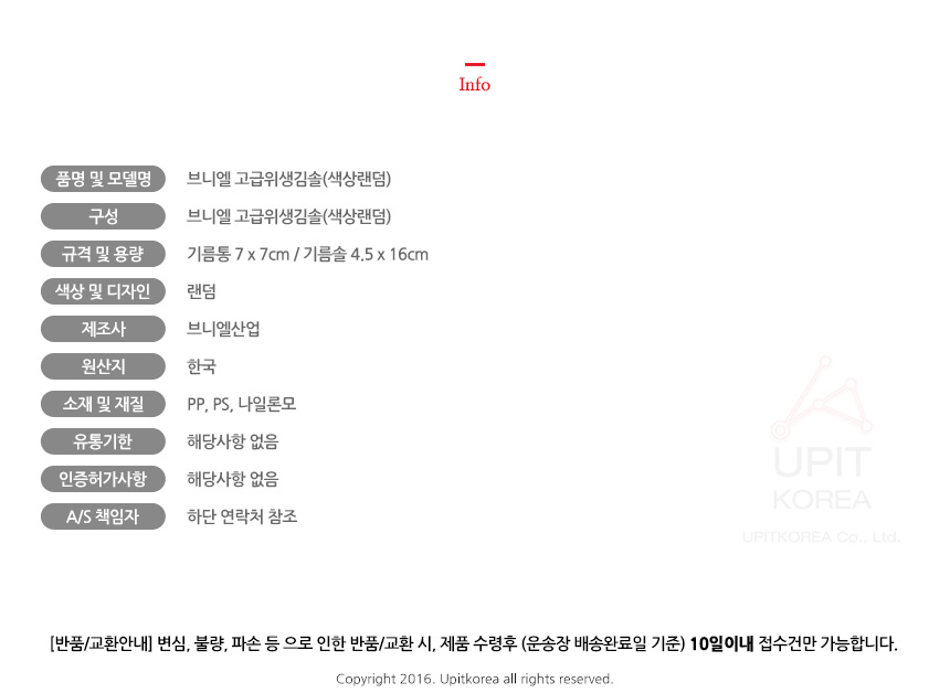 • 반품/환불조건: 도착후 1주일 이내 사용하지 않은 상태에서 가능합니다,초기제품 이상의 경우 동일한 제품으로 1:1 교환원칙, 사용후 제품이상은 A/S를 원칙으로 합니다,