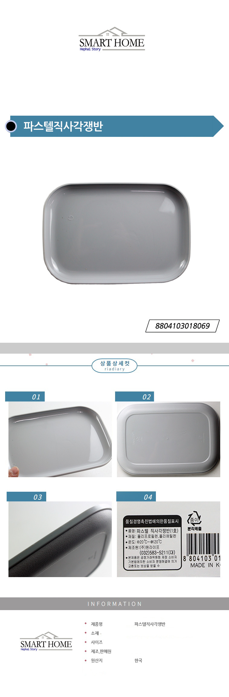 파스텔직사각쟁반 그레이