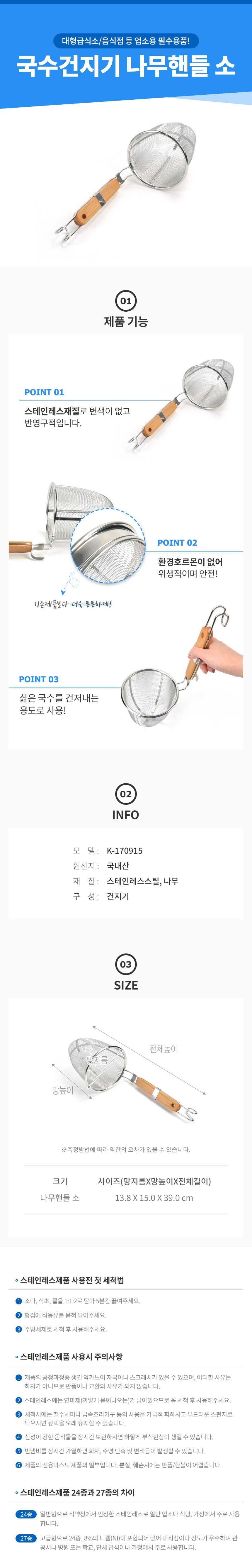 국수 건지기 나무핸들 소형 거름망 면 채망 우동