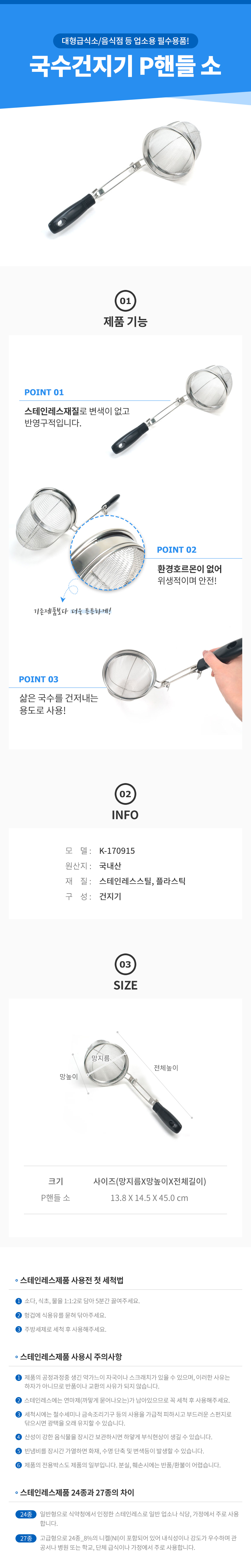 국수 건지기 핸들 소형 거름망 면 채망 망 우동 조리