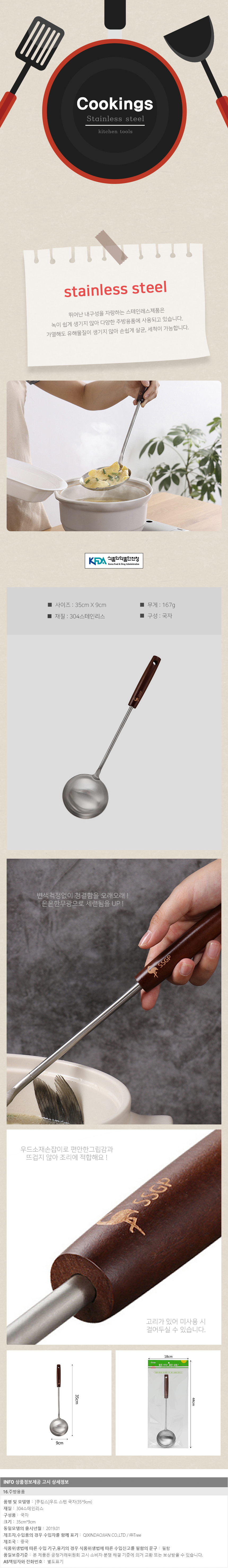 [쿠킹스]우드 스텐 국자(35x9cm) 이미지/