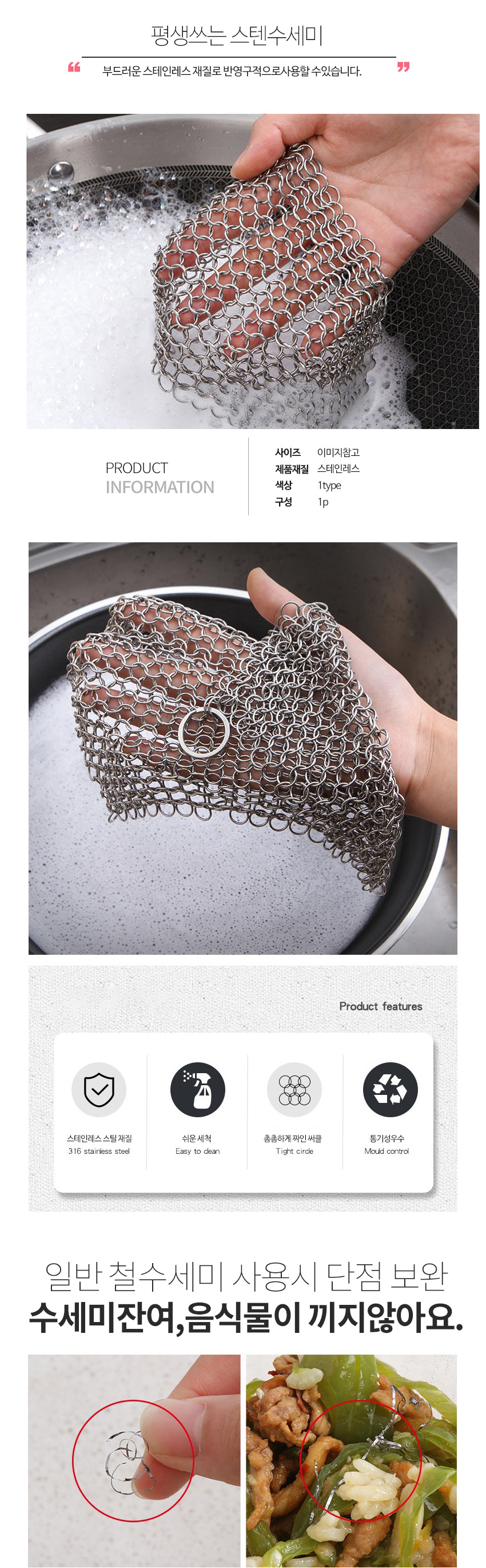 쇠 수세미 철수세미 탄냄비 스텐 평생쓰는 이미지/