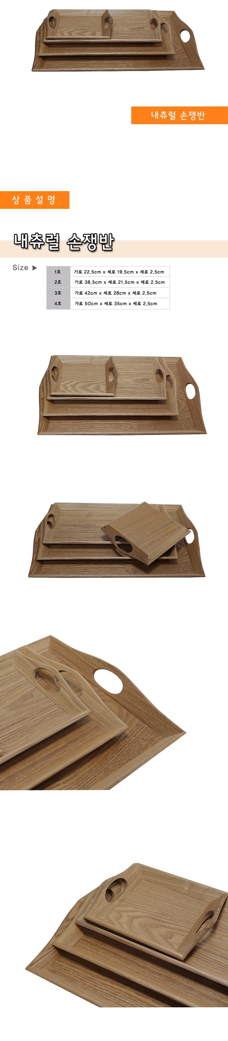 내츄럴 손쟁반 3호42 x 28 트레이 쟁반 채반 주방용품 식기