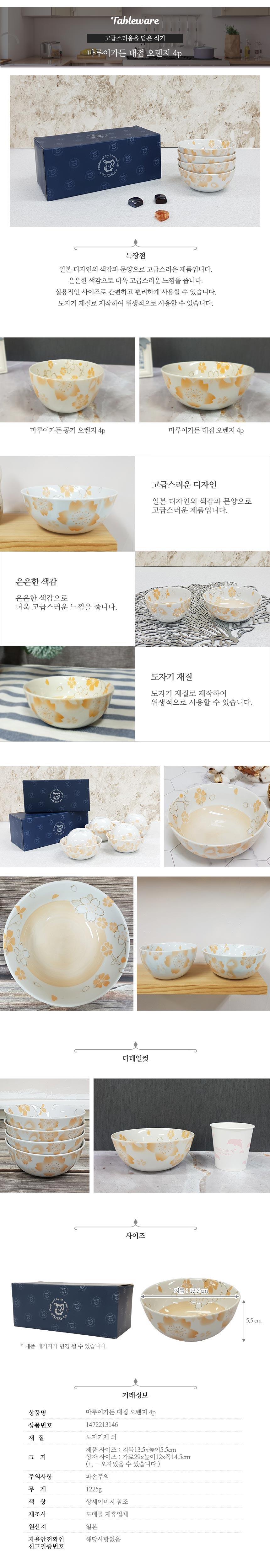 오렌지 4p 대접 마루이가든 식기 라면그릇 그릇 접시 이미지/