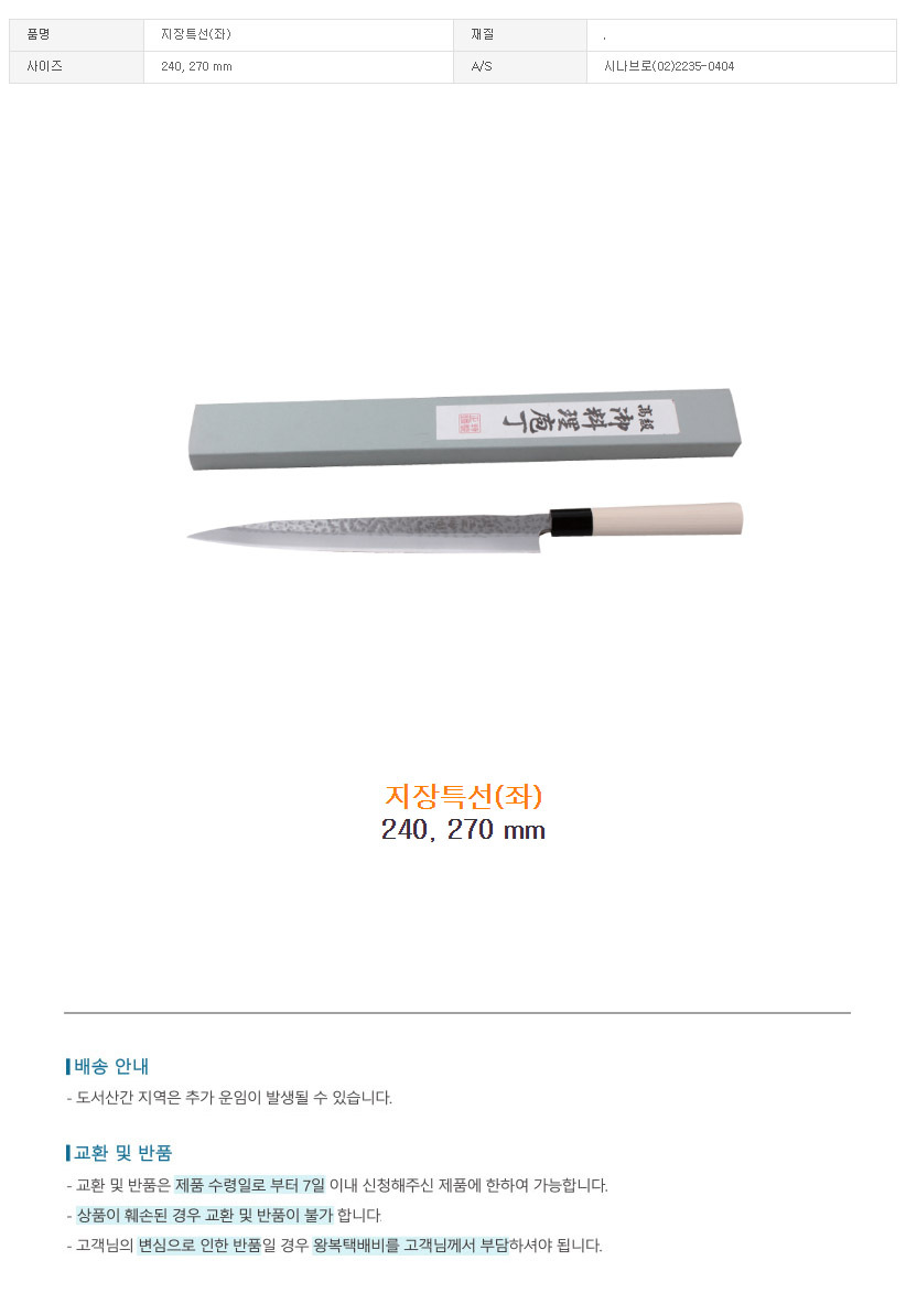 지장특선 2size 조리용칼 좌 식칼 칼 주방 식당용 이미지/