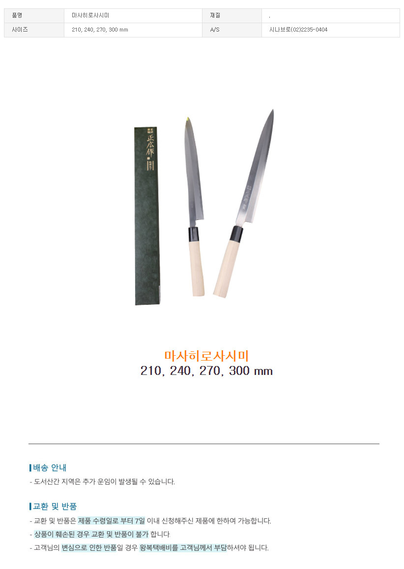 회칼 참치 일집식 마사히로 사시미 3size 회칼 이미지/