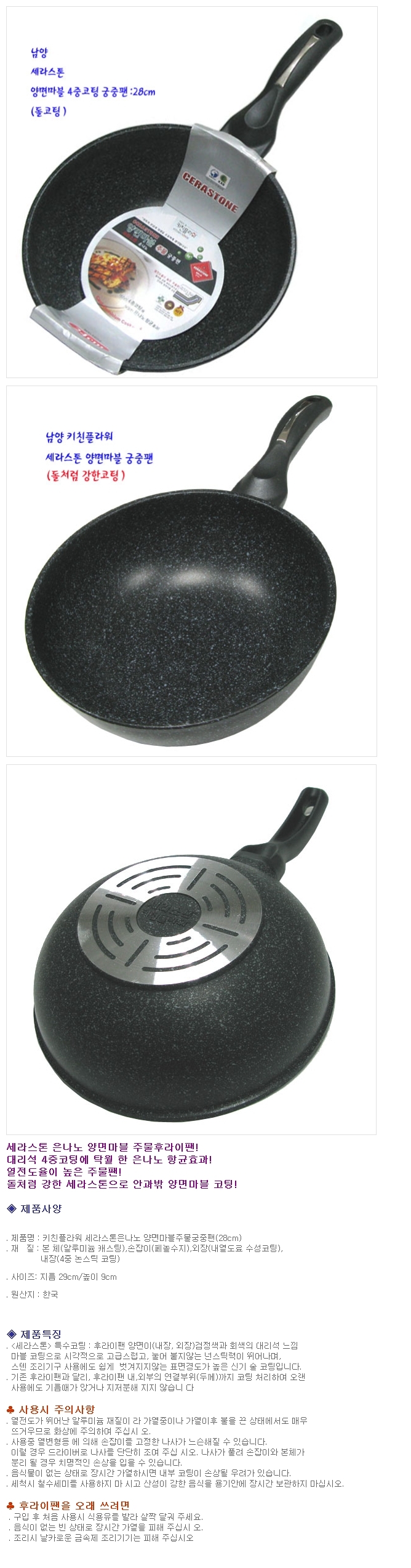 키친플라워 후라이팬 궁중팬 볶음팬 프라이팬 28cm