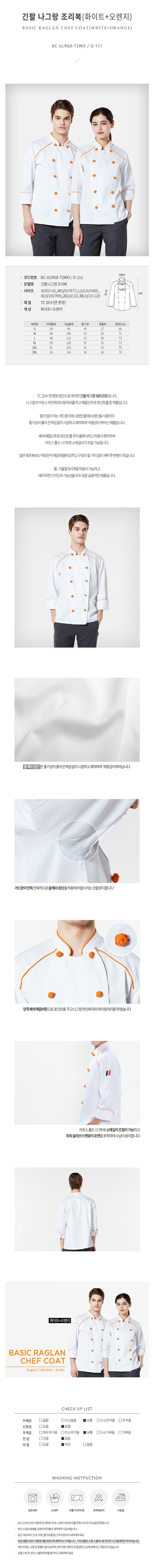 나그랑 조리복 화이트오렌지 요리사 위생복 주방가운