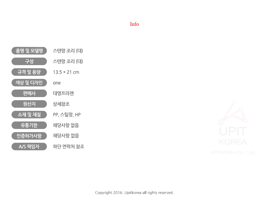 • 반품/환불조건: 도착후 1주일 이내 사용하지 않은 상태에서 가능합니다,초기제품 이상의 경우 동일한 제품으로 1:1 교환원칙, 사용후 제품이상은 A/S를 원칙으로 합니다,