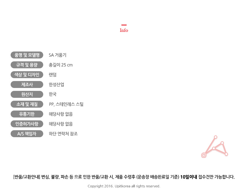 • 반품/환불조건: 도착후 1주일 이내 사용하지 않은 상태에서 가능합니다,초기제품 이상의 경우 동일한 제품으로 1:1 교환원칙, 사용후 제품이상은 A/S를 원칙으로 합니다,