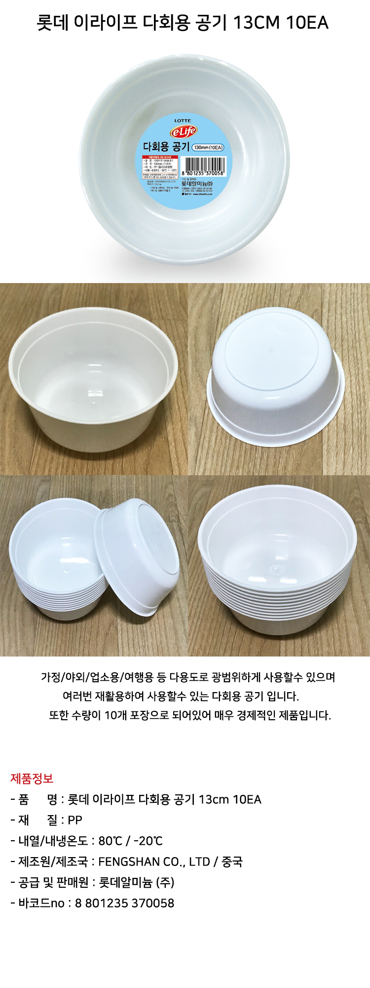 롯데 이라이프 다회용 공기 13cm 10EA