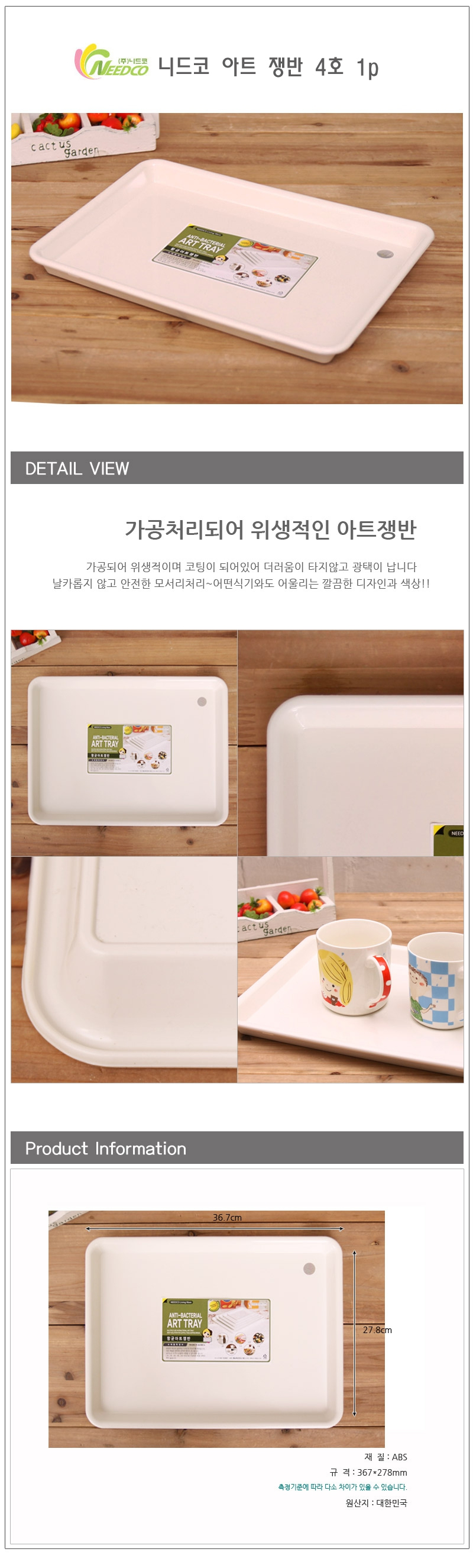 니드코 아트 쟁반 4호 1p 예쁜쟁반 고급쟁반 트레이