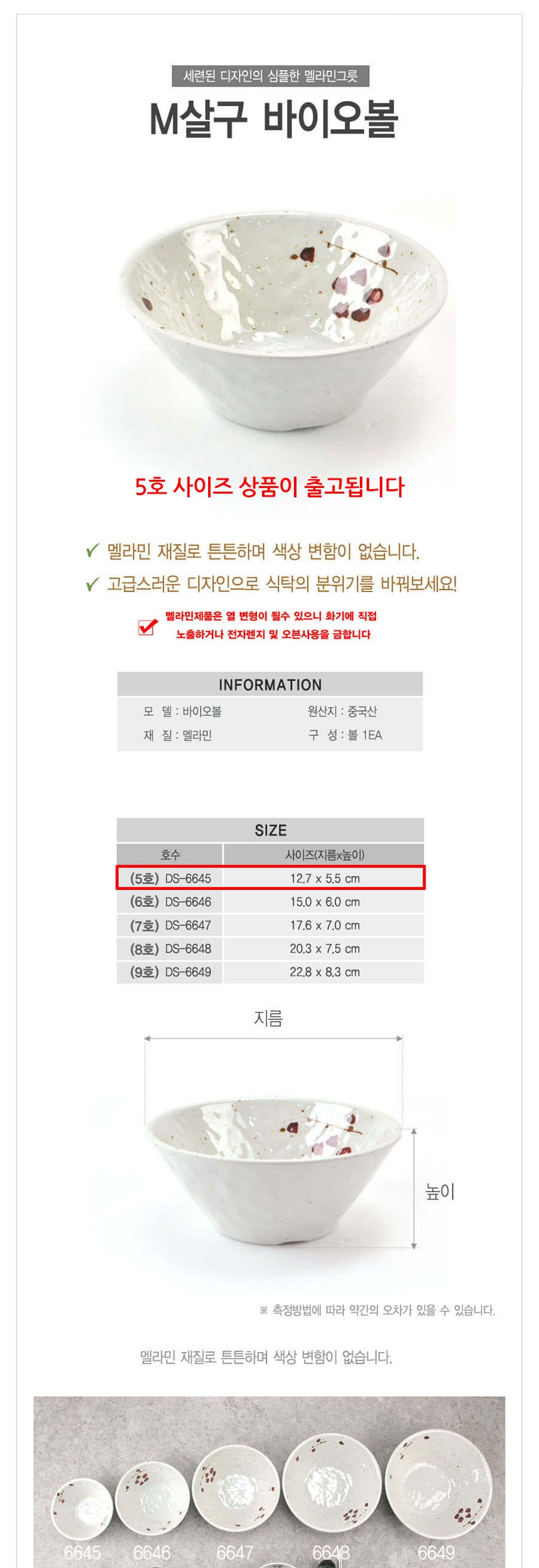 업소용 멜라민 바이오볼 대접 살구 5호 13cm 이미지/