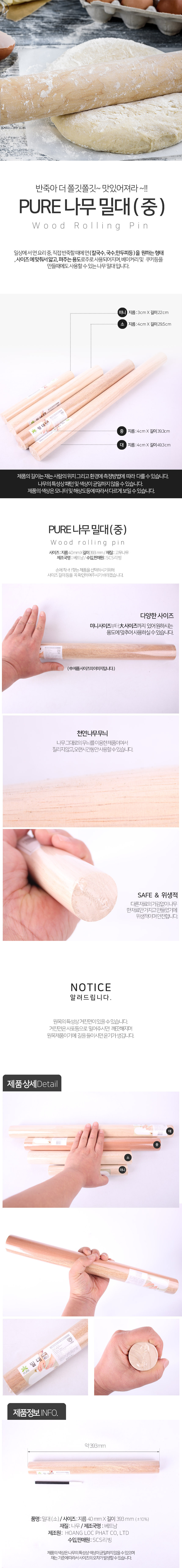 홈베이킹 제과제빵 빵만들기 만두피 빚을때 반죽 우드조리도구 홍두께 퓨어 나무밀대 중 477