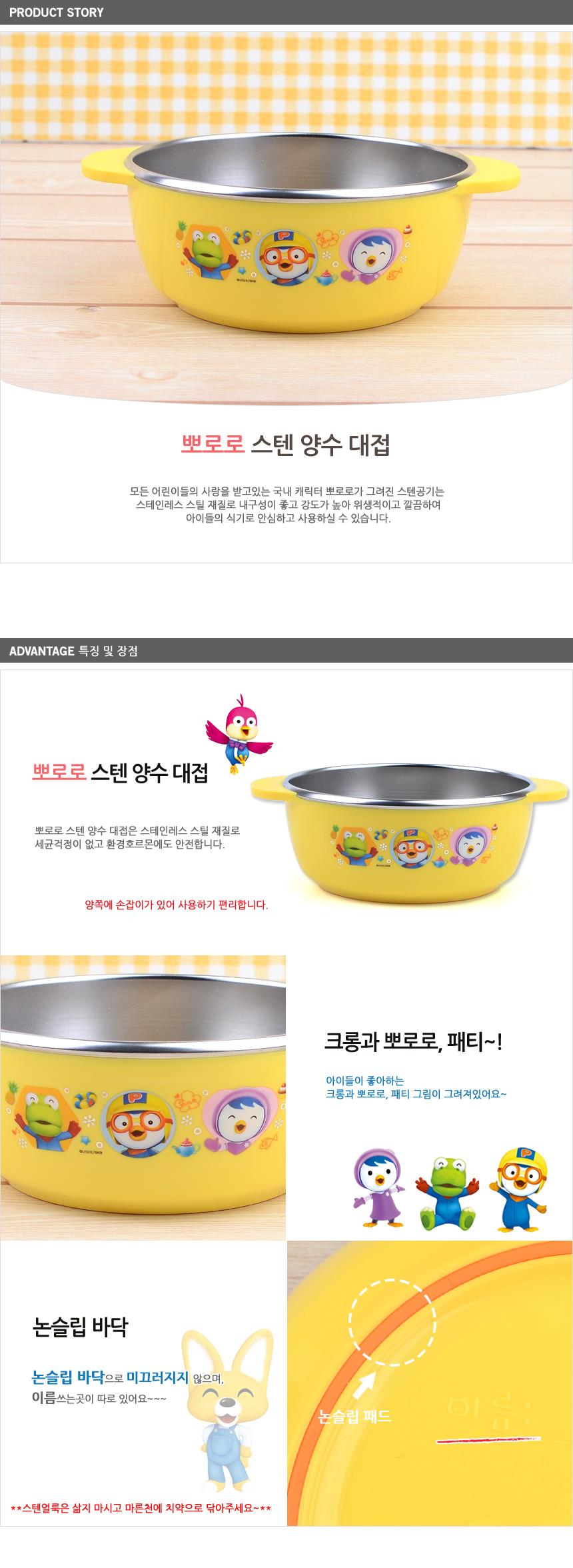 뽀로로 스텐 양수 대접 귀여운그릇 아기그릇 아기밥