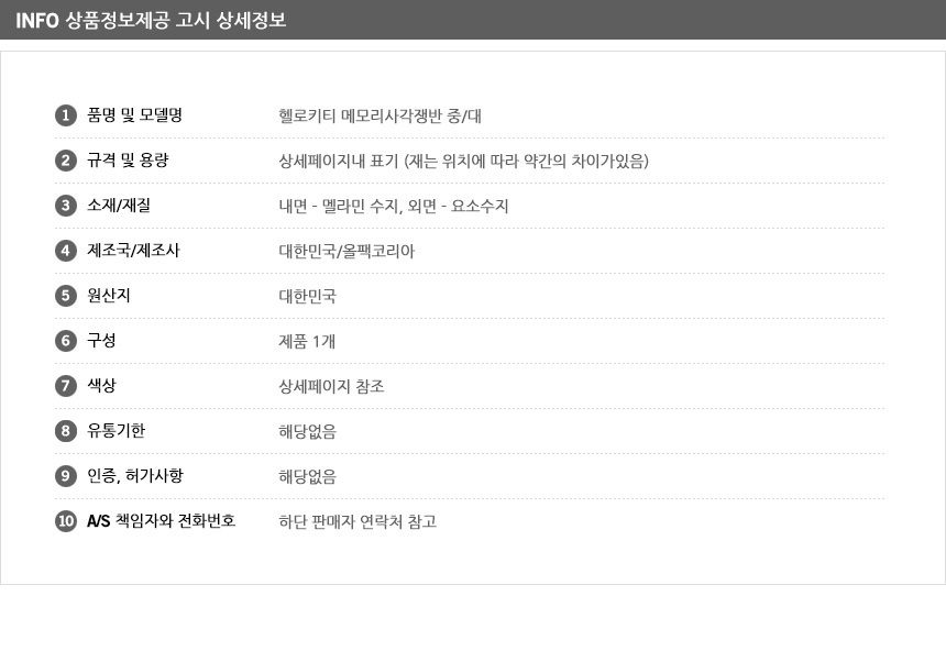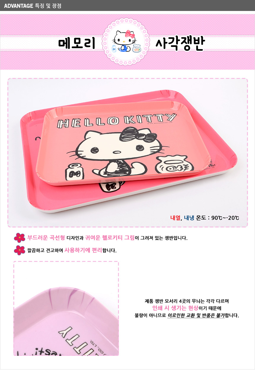 헬로키티 메모리사각쟁반 중 간식쟁반 간식접시