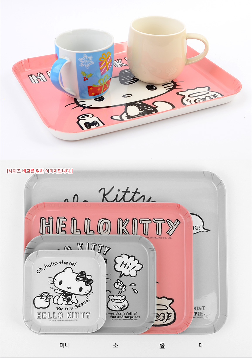 헬로키티 메모리사각쟁반 중 간식쟁반 간식접시 이미지/